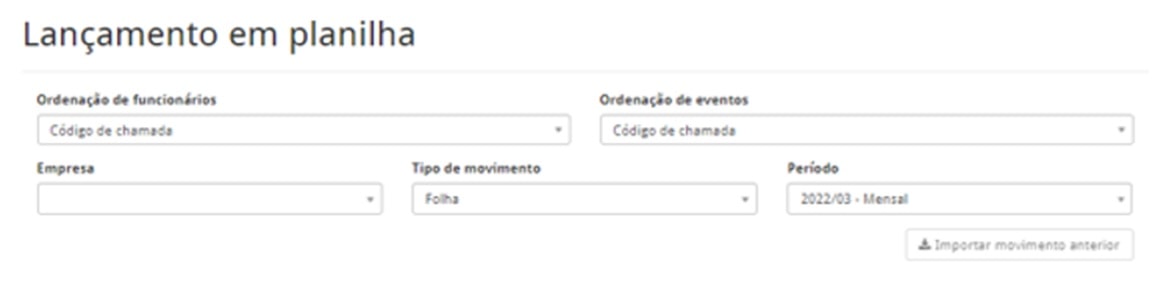 Em Novo lançamento opção 'Lançamento em planilha', você terá acesso aos seus colaboradores e poderá lançar os eventos que ocorrem normalmente em sua folha de pagamento. Se a variável desejada não for estiver disponível, solicite e nós incluiremos.